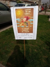 Celebrando el Día del Libro en nuestra biblioteca con una significativa intervención en la comuna. 23 de abril desde las 10:00 hrs. de la mañana. Entrega de separadores y colocación de letreros.