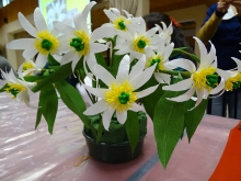 Las tías de las salas cuna y jardines infantiles pertenecientes a Integra y Junji, durante dos semanas hicieron un cambio de actividades para participar en un entretenido y didáctico Taller de confección de flores de papel, con la profesora de Artes Visuales Jéssica Astudillo Sánchez, acción enmarcada en su innovador y educativo Proyecto Fondart 2015, denominado Flores Nativas de la Zona Centro Sur de Chile, elaboradas en papel. A la culminación de este taller asistieron la Srta. Dannery Cárcamo, Directora Desarrollo Comunitario Dideco - Municipal y el Sr. Enrique Rosales, Encargado de Cultura, quienes compartieron y felicitaron a las tías por la calidad de sus trabajos y compromiso con la actividad