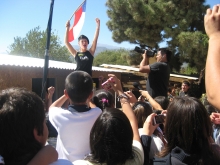 Jara, Longhi, Rodríguez y Orrock recorrieron el centro del pueblo junto a las autoridades y luego comenzaron a construir una mediagua para la señora Venericia Pinto, a quien se le derrumbó toda su casa después del terremoto.