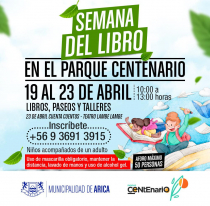 Con estrictos protocolos sanitarios Municipalidad conmemora Día del Libro en Parque CentenarioDebido a los altos índices de depresión que ha causado la pandemia por Covid-19 en las familias ariqueñas y los problemas de salud mental, la Municipalidad de Arica como una forma de mitigar estos efectos...