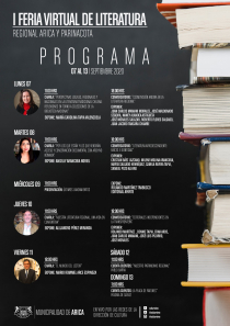 ¡Acompáñenos desde este Lunes 7 de septiembre! Todo el panorama literario regional, se hará presente en esta I Feria Virtual de Literatura Regional Arica-Parinacota.visita el siguiente linkhttps://www.facebook.com/culturaima/videos/324163718926062/En los siguientes horarios 11:00 y...