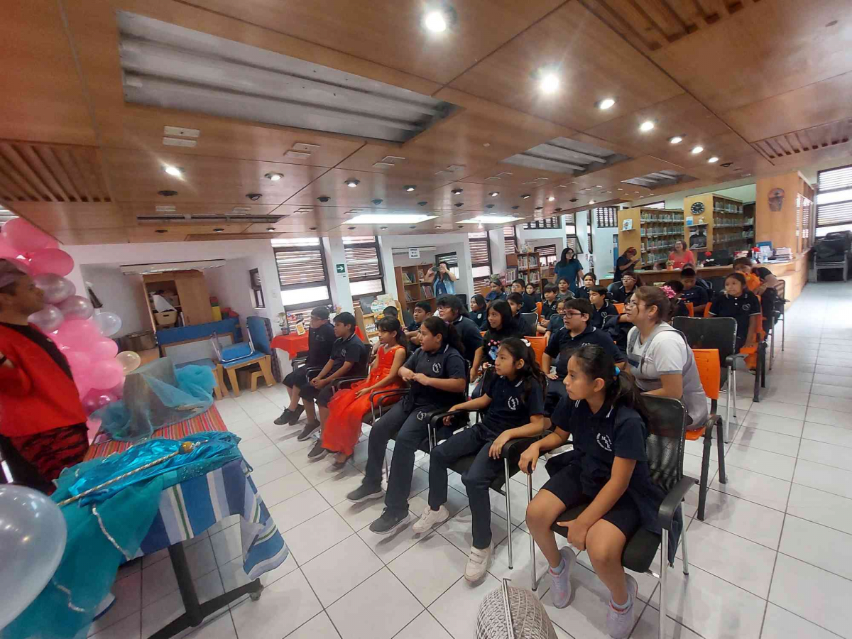 En conmemoracion al mes del Libro, realizamos una actividad Narración de cuentos dramatizados por el actor Hans Martínez de la compañía de teatro llamada TEATRUGANDO , quien dicto Cuentos Añañuca como la princesa y el guisante y la fabula de la liebre y la tortuga. La actividad fue dirigida hacia los alumnos de cuarto de la escuela Manuel Rodríguez Erdoiza.