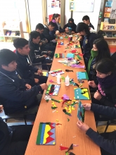 Seguimos construyendo el libro textil en el taller de Inclusión EcoEditorial.