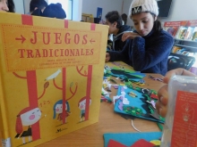 En el Taller los jóvenes están elaborando sus libros textiles utilizando como temática juegos tradicionales, que son parte de nuestro rescate y memoria.