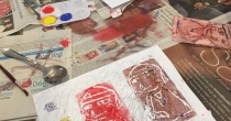 En nuestra segunda sesión los niños y niñas del colegio Papelucho realizaron un grabado en base al relato Aymara "La música de las montañas". Este taller se realiza todos los jueves y está a cargo de Catalina Castillo.