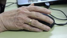 Manos que a pesar del temblor no les impide enviar correos a sus amigos y seres queridos