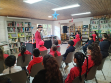 En el marco de las celebraciones del Mes del Libro, el martes 7 de abril, el espectáculo infantil de circo-teatro “Tito Rissoti y los libros”, fue disfrutado por las niñas y niños del 4 año de la Escuela Las Cruces a cargo de la profesora Ana Retamal.
