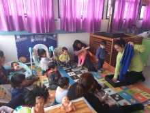 El dia 5 de Abril se realizo una pequeña actividad llamada "APRENDIENDO Y DESCUBRIENDO NUESTROS CUENTOS ",donde se llevo acabo cuentos con titeres ,genero ,canciones ,e imagenes donde estos pequeñitos puedan entender y descubrir a su corta edad el mundo de la lectura .