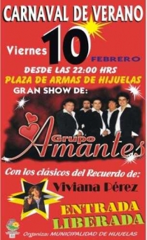 Hoy viernes 10 de febrero 2012, a contar de las 22:00 Hrs., se realizará en la Plaza de Armas de Hijuelas, un Gan Show, el que contará con la presencia del Grupo Amantes, y los clásicos del Recuerdo con Viviana Pérez.