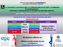 Nos es grato informarles, que en esta nueva etapa de los talleres artísticos, nos trasladamos a la Biblioteca Publica Pablo Neruda, ubicada en Profesor Zañartu 1185 (esquina Avda. Independencia).