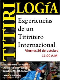 Con una entretenida charla, muy lúdica, y participativa. El Connotado Titiritero Internacional, Señor Larry Malinarich, de la compañía Teterike de Temuco, deleito a los presentes con su historias y anécdotas ocurridas a lo largo de toda su vida.