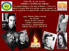La Biblioteca Pública Municipal de la Florida tiene el agrado de invitarlos al Primer Club de Lecto escritura: Libros y Letras de fuego en su segundo año de vida, el proyecto está centrado en promover entre sus asistentes el placer de la lectura desarrollando actividades para estimular la lectura y literatura creativa. Cada miércoles los asistentes al Club están invitados a recorrer textos fascinantes, debatir sobre libros y a escribir impresiones. Analizaremos al rebelde Arthur Rimbaud , la tristeza escéptica de Ernesto Sábato ,la potencia de Pablo Neruda , la nostalgia de Oscar Castro junto a otros grandes escritores como Paul Verlaine, Violeta Parra, Tomas Harris, Katherine Manfield, Manuel Mujica Lainez, Gonzalo Rojas, Nicanor Parra entre muchos otros.