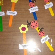 Haciendo manualidades para los niños del Jardín Infantil Cepillin que vinieron a nuestra actividad en la Biblioteca La Granja,