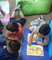 Mientras sus mamás están en taller, ellos están en la biblioteca, ya sea jugando o leyendo.Que entretenido.