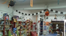 Estamos adornados con telas de araña, murciélagos, fantasmas y otros monstruitos .Para que los niños disfruten .Biblioteca La Granja