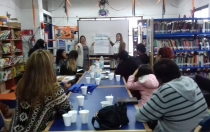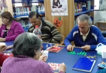 Se reunieron este lunes a contar sus vivencias y a la vez jugaron lota, lo pasaron genial. Biblioteca La Granja