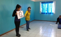 Haciendo manualidades para los niños del Jardín Infantil Cepillin que vinieron a nuestra actividad en la Biblioteca La Granja,