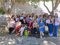 Segunda clase de Taller de Bordado en dependecias de Biblioteca, donde las participantes van aprendiendo en cada clase las técnicas de este bello arte.