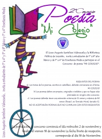 El Liceo Augusto Santelices en forma conjunta con La Biblioteca Pública invita a estudiantes de enseñanza básica y Media del establecimiento a participar del Segundo concurso "Poesía de Licantén", personaje de mi comuna.