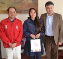 En su vista al jefe comunal, la estudiante estuvo acompañada de su entrenador, el profesor Héctor Espinoza, con quien se prepara para este importante desafío deportivo.