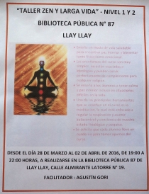 SE REALIZARA EN LA BIBLIOTECA 87 DE LLAY LLAY "TALLER ZEN Y LARGA VIDA NIVEL I Y II"