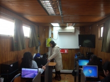 La capacitación se logra gracias al laboratorio móvil y al compromiso del alcalde Sr. Héctor Flores Peñaloza por facilitar vehículo para el traslado de las personas y a la monitora.