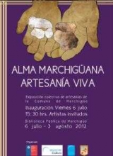 Alma Marchiguana, Artesanía Viva Se presentará en la Biblioteca Pública desde el 6 de julio al 3 de agosto. La muestra cuenta con la participación de más de 30 artistas locales que expondrán sus creaciones en conjunto con la I. Municipalidad de Marchigüe, Servicio País Cultura y la Biblioteca Pública donde se realizará la actividad. Esta actividad ademas cuenta con el apoyo del Consejo Regional de la Cultura y las Artes.