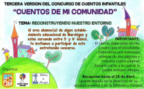Biblioteca Pública N° 406 y la oficina de la Cultura de la Ilustre Municipalidad de Marchigüe. Organizan y convocan al tercer concurso de cuentos infantiles con el objetivo de concientizar a la comunidad escolar, como podemos cuidar nuestro entorno (El Medio Ambiente), fomentar la creación e...