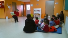 Al Jardín Infantil y Sala Cuna “Padre Mamerto” de la JUNJI. Los niños y niñas de la Sala Cuna Mayor y Nivel Heterogéneo disfrutaron de los cuentos “Sonidos” adaptado por Paula Vera y del cuento “Conejo y sombrero” de Verónica Álvarez, en teatro Kamishibai; para luego participar de la caja viajera, donde pudieron disfrutar de los diferentes libros que esta llevaba. Estos cuentos fueron narrados por tía Mónica Flandez, voluntaria de la Biblioteca, en una actividad que se realizó en el Jardín Infantil y Sala Cuna “Padre Mamerto”.
