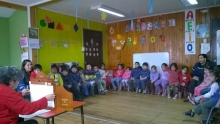 Llegaron a la Escuela de Lenguaje “Las Vocales”, los niños y niñas del Kinder y Pre-Kinder, cantaron la tradición oral “El gallito perdido” del libro Tren de Lectura, disfrutaron del cuento “Corazón Rojo” de Saúl Schkolnika y del cuento Kamishibai “Bernardo y Canelo” de Fernando Krahn; participaron de la caja viajera donde pudieron manipular los diferentes libros que esta lleva. Estos cuentos fueron narrados por tía Mónica Flandez, voluntaria de la Biblioteca, en una actividad que se realizó en la Escuela de Lenguaje “Las Vocales”, donde participaron 21 niños y niñas junto a sus tías.