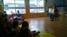 Hasta el Jardín Infantil y Sala Cuna “Suyai” de Fundación Integra, los niños y niñas del Nivel Medio Menor y Sala Cuna Mayor, disfrutaron del cuento “Sonidos” adaptado por Paula Vera, los niños disfrutaron de la narración y a través de esta historia se introdujeron en un mundo mágico lo que les permite desarrollar su imaginación, además se entretuvieron con el cuento “El gato con botas” de Charles Perrault, narrado en la modalidad del Kamishibai un pequeño teatro de madera y láminas de cartón con llamativos dibujos que van construyendo una historia, además cantaron junto al libro “Arcoíris de poesía infantil 2” de Lucia Araya y Clementina Maldonado.