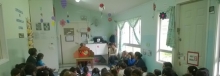 Y los cuentacuentos continúan su viaje, llegaron al Jardín Infantil y Sala Cuna “San José” de Fundación Integra, los niños y niñas de Sala Cuna Mayor, Nivel Medio Menor disfrutaron del cuento “El Mar” adaptado por Paula Vera, del cuento Kamishibai “Conejo y sombrero” de Verónica Álvarez; participaron de la caja viajera donde pudieron manipular los diferentes libros que esta lleva. Estos cuentos fueron narrados por tía Mónica Flandez, voluntaria de la Biblioteca, en una actividad que se realizó en el Jardín Infantil y Sala Cuna “San José”, donde participaron 51 niños y niñas junto a sus tías.