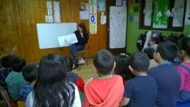 Llegaron, hasta la Escuela de Lenguaje “Las Vocales”, los niños y niñas del Pre Kinder y Kinder, disfrutaron de los cuentos narrados por tía Fernanda Manríquez, voluntaria de la Biblioteca.