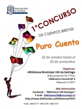 La Biblioteca Vecinal N° 9 en el marco del proceso de Extensión Cultural, invita a todos sus vecinos a participar en el 1° Concurso de Cuentos Breves "Puro Cuento", organizado por la Biblioteca Pública Municipal 104 de la I. Municipalidad de Santiago.