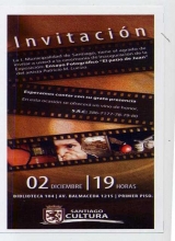 La Biblioteca Pública Municipal 104 de la I. Municipalidad de Santiago tiene el agrado de invitalos este viernes 2 de diciembre a la inauguración de la exposición fotográfica "El Patio de Juan" del artísta Patricio M. Lueiza, este evento comenzará a la 19 hrs. en nuestras depencias ubicadas en Av. Presidente Balmaceda Nº 1215 comuna de Santiago.
