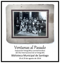 Les invitamos cordialmente a visitar la exposición fotográfica "Ventanas al Pasado" desde el martes 19 hasta el viernes 29 de agosto 2014 en Biblioteca Municipal de Santiago, con motivo de la celebración del "Día Internacional de la Fotografía". Entrada liberada. "Ventanas al Pasado"....