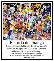 El jueves 14 de agosto de 2014 se realizó la charla Historia del Manga, presentación acerca del desarrollo del cómic japonés, en Biblioteca Municipal de Santiago con motivo de la celebración del "Mes de la Juventud".