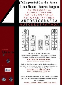 A partir del 11 de noviembre y hasta el 2 de diciembre se presentará en la Biblioteca Pública Municipal Nº 104 de la I. Municipalidad de santiago, la exposición de arte de alumnos del Liceo Manuel Barros Borgoño "Autobiografía Retratada".