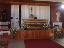El Párroco Juan Carlos González, improviso el altar en el escenario de este salón, en cual dijo se estaría por alrededor de 3 años funcionando en este lugar.