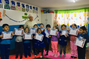 Biblioteca Pública Bibliotren con Finalización con entrega de diplomas a los niños de la escuela de lenguaje "Santa Emilia" del taller de yoga, realizado por la monitora. Verónica Pérez.