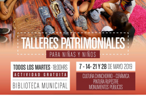 Los invitamos a participar de los talleres patrimoniales preparados en el marco del mes del patrimonio. Nos vemos todos los martes desde las 18hrs en la ludoteca de la Biblioteca Municipal.
