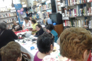Dos veces por semana se reúnen en la Biblioteca de O’Higgins de Pilay un grupo 10 de mujeres, quienes realizan manualidades para el hogar en material reciclado, CD, botellas, papel de diario, tejas, tapas de botellas, envases de plástico.