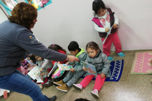 Celebrando el Día Internacional Del Libro con los Más Pequeños...Entregándoles algunos Cuentos.Agradecemos a las Tias por tan Amable Recibimiento.En la Fotografía nuestra Encargada Srta.Magaly Gaete compartiendo con los pequeños del Jardín Valle de Narau.