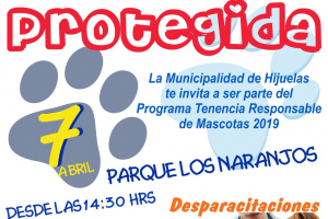 La Municipalidad de Hijuelas le invita a ser parte del Programa Tenencia Responsable de Mascotas. El día domingo 07 de abril desde la 14:00 horas, en el Parque Los Naranjos, se realizará el lanzamiento de la Campaña Mascota Protegida. En la actividad habrá- Mini Granja- Cuadro verde de...