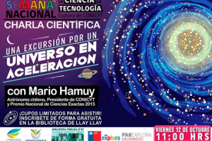 Charla Científica: "Una excursión por un Universo en aceleración"El 12 de Octubre a las 11:00 hrs., nuestra Biblioteca Pública 087 de Llay Llay finalizó la Semana de la Ciencia con la Charla del Científico, PhD en Astronomía y premio Nacional de Ciencias 2015, Mario Hamuy, con la gran ...