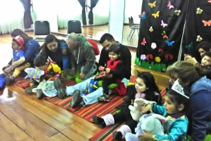 Lo niños y niñas del Nivel Heterogéneo del “Jardín Sobre Ruedas”. Están celebrando el Aniversario Fundación Integra, y quisieron conocer nuestra Biblioteca