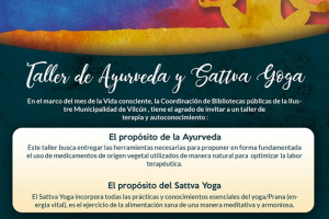 TALLER DE AYURVEDA Y SATTVA YOGA La Coordinación de Bibliotecas Públicas de la ilustre Municipalidad de Vilcún, tienen el agrado de Invitarlos(as) a nuestro primer encuentro de crecimiento personal y autoayuda (GRATUITO) en Biblioteca publica 274 ubicada en Lord Cochrane # 365 Horarios...