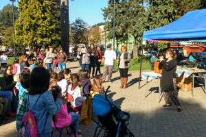 Esta actividad de Cuentacuentos se realizó en la Plaza de Armas de Tomé, en el marco de la celebración del "Día del Libro y Derecho de Autor"