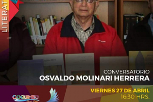 Este viernes 27 de Abril, a las 16:30 horas, los invitamos a participar del conversatorio con Osvaldo Molinari Herrera, quién nos presenta su ponencia; "Porque escribimos y Para que debemos leer"Todos Invitados. Osvaldo Molinari Herrera, residió 30 años en Antofagasta y hoy, vive en Coquimbo....