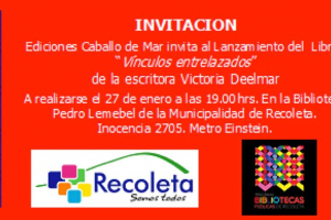22 enero 2018. Todas y todos invitados a la presentación del cuarto libro de Victoria Deelmar, escritora recoletana, en la biblioteca Pedro Lemebel.
